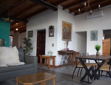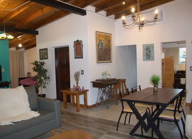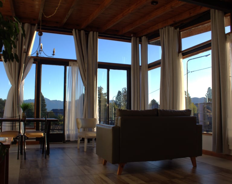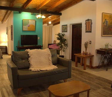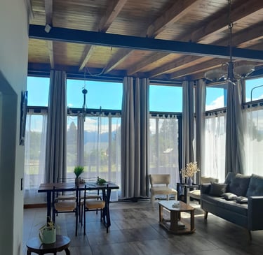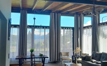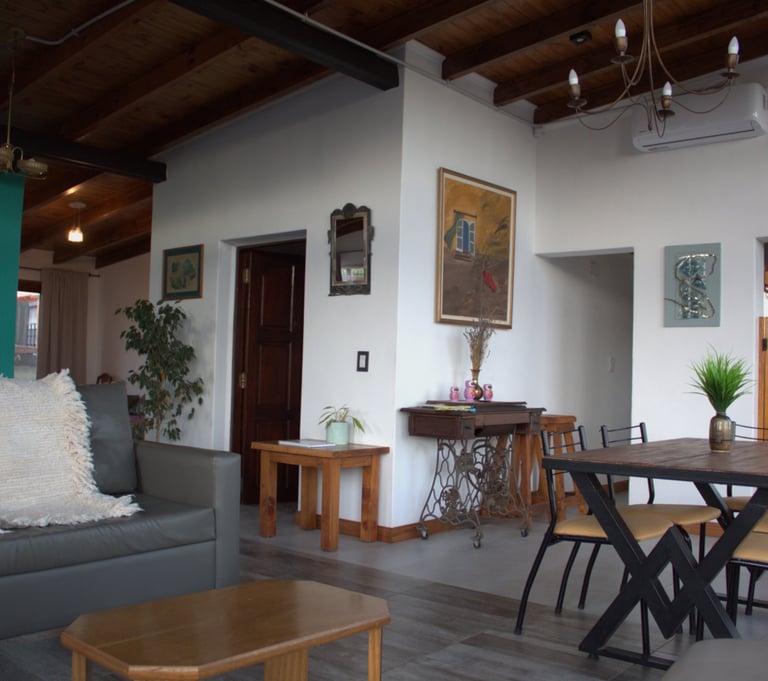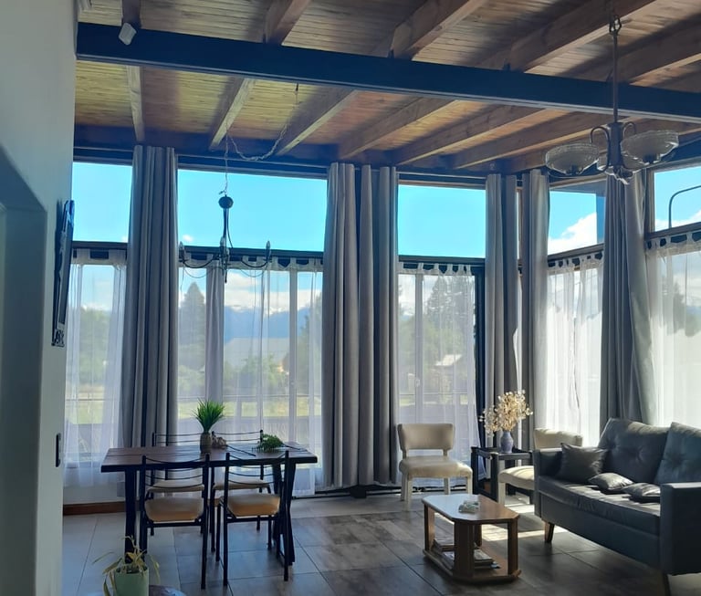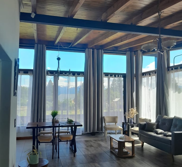 El loft presenta un diseño contemporáneo y acogedor, destacando su impresionante sala y comedor. Con un techo alto que aporta amplitud, este espacio se ilumina gracias a los ventanales que ofrecen vistas panorámicas a la majestuosa Cordillera de los Andes y alrededores. El loft está equipado con todos los requisitos de seguridad, incluyendo extintor, luz y carteles de emergencia, así como un televisor de pantalla plana para entretenimiento. En conjunto, este espacio combina estilo y comodidad en un entorno natural excepciona.