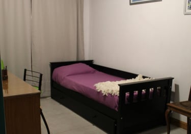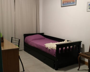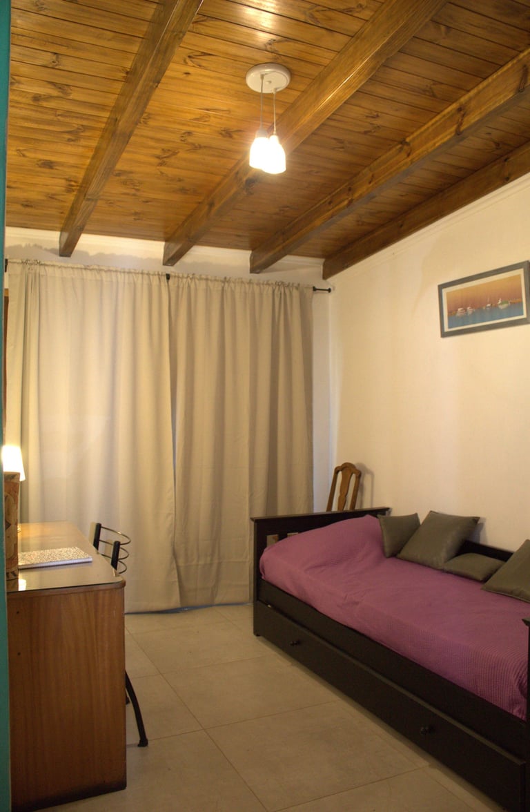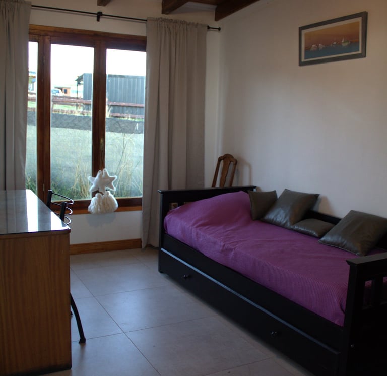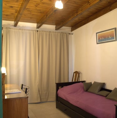 Nuestra acogedora habitación secundaria, equipada con una cama de una plaza. Un escritorio con silla y un placard para tus prendas. Un espacio ideal para descansar y trabajar.