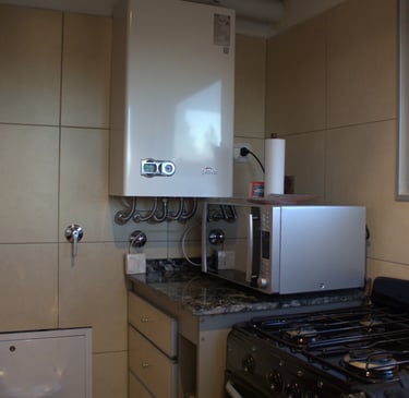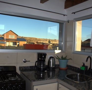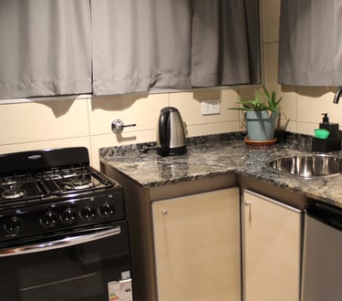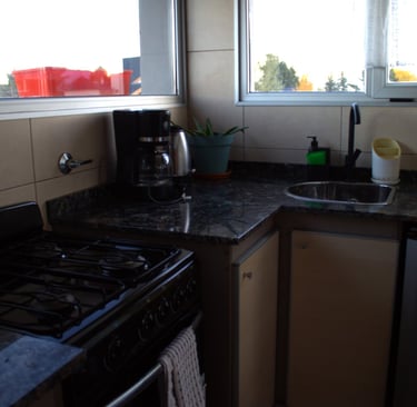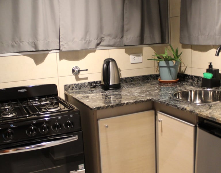 La cocina del loft es moderna y funcional, completamente equipada para tu estadía. Ofreciendo todo lo necesario para una experiencia cómoda y práctica.